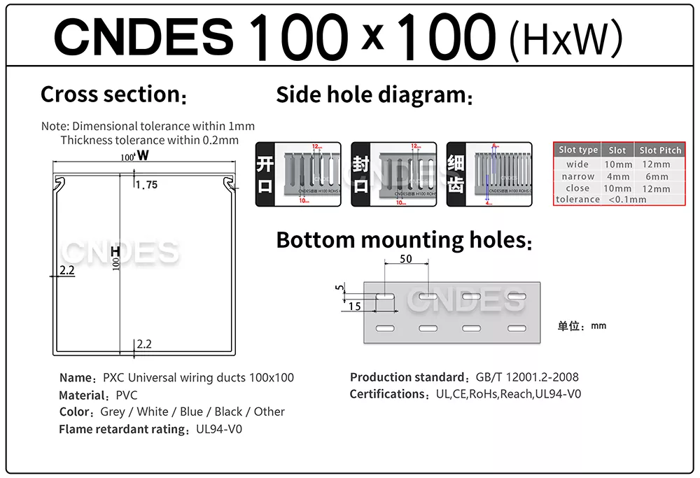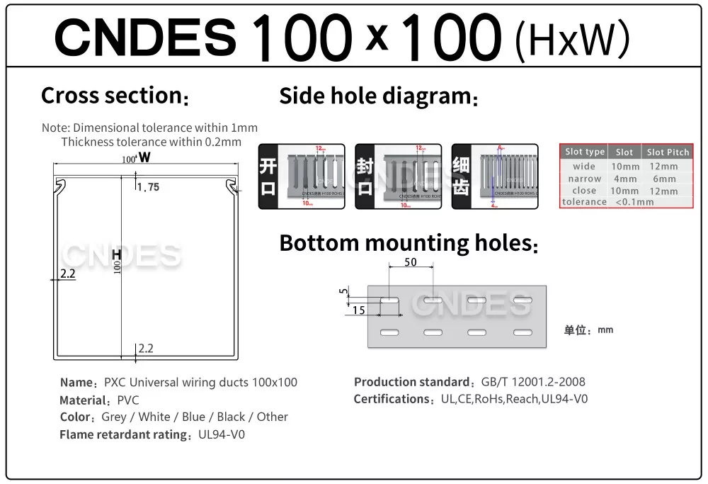 हमारे अनुकूलित 100×100 वायर प्रबंधन केबल डक्ट्स के साथ अपनी केबलिंग परियोजनाओं को अनुकूलित करें। चीन में एक अग्रणी पीवीसी केबल ट्रे निर्माता और आपूर्तिकर्ता के रूप में, सीएनडीईएस आपकी सभी केबल प्रबंधन आवश्यकताओं के लिए विश्वसनीय, उच्च-परिशुद्धता और अनुकूलन योग्य समाधान प्रदान करता है। हमारे पास वायर डक्ट्स (केबल ट्रे) की सभी विशिष्टताएँ हैं। यदि आपको अन्य विशिष्टताओं की आवश्यकता है, तो कृपया बेझिझक हमसे संपर्क करें!