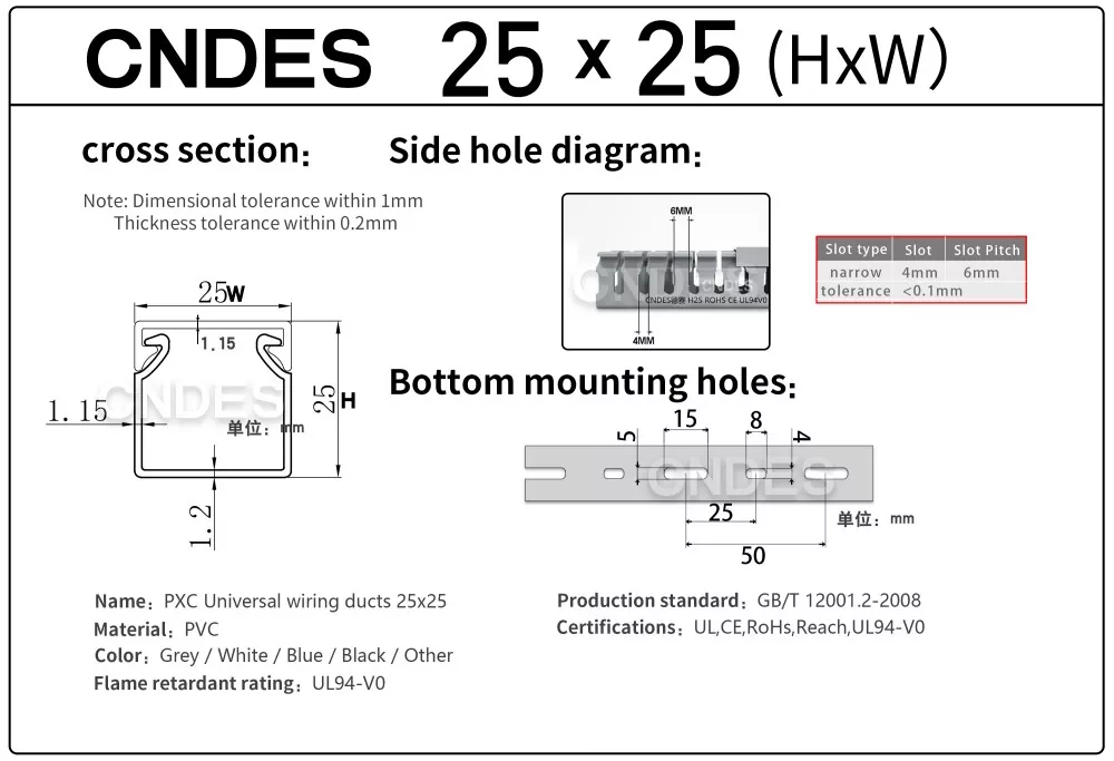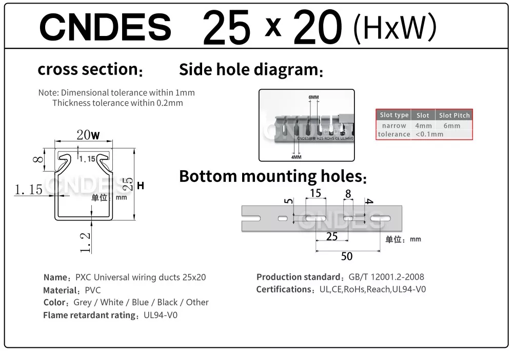 हमारे स्वतंत्र रूप से विकसित उच्च परिशुद्धता मुद्रांकन उपकरण के माध्यम से, एक अद्वितीय खंडित स्वचालित काटने की प्रक्रिया के साथ संयुक्त, सीएनडीईएस लचीले ढंग से कई विशिष्टताओं में उत्पादों का उत्पादन कर सकता है, जिसमें उच्च प्रदर्शन 25 मिमी ऊंचाई पीवीसी स्लॉटेड कंट्रोल पैनल डक्ट शामिल हैं, जो नियंत्रण कैबिनेट और विद्युत प्रणालियों में ग्राहकों की विविध आवश्यकताओं को पूरा करते हैं।
