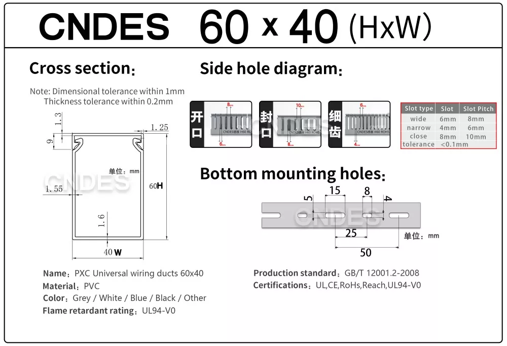 चीन में एक अनुभवी अनुकूलित 60×40 फ्लेम-रिटार्डेंट पीवीसी वायरिंग डक्ट फैक्ट्री के रूप में, सीएनडीईएस सुनिश्चित करता है: