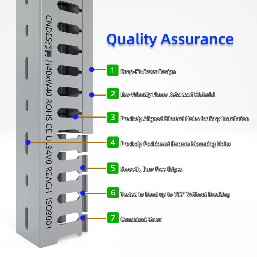 सीएनडीईएस चीन में एक विश्वसनीय पीवीसी केबल ट्रे निर्माता और आपूर्तिकर्ता है। हम स्थिर उत्पाद गुणवत्ता, सटीक स्लॉट रिक्ति और UL, CE, RoHS और REACH मानकों का अनुपालन सुनिश्चित करते हैं, जो घरेलू और अंतरराष्ट्रीय स्तर पर परियोजनाओं के लिए उपयुक्त हैं।
