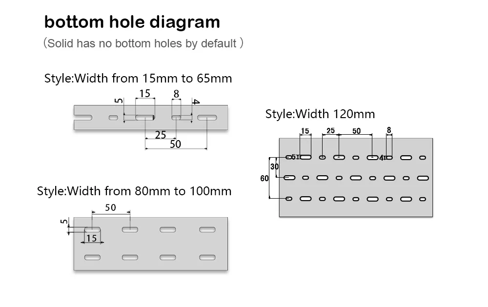 केबल ट्रे के विनिर्देशों को ऊंचाई * चौड़ाई के रूप में व्यक्त किया गया है, जिसमें इकाई मिमी है। सबसे पहले, केबल ट्रे का आवश्यक आकार निर्धारित करें, जैसे 80 मिमी ऊंचा और 40 मिमी चौड़ा। फिर, वायरिंग की मोटाई के आधार पर आउटलेट छेद की चौड़ाई चुनें, या तो चौड़े दांत (8 मिमी) या बारीक दांत (4 मिमी)। यह अनुशंसा की जाती है कि वास्तविक केबल ट्रे स्थान के 70% से अधिक न घेरें।